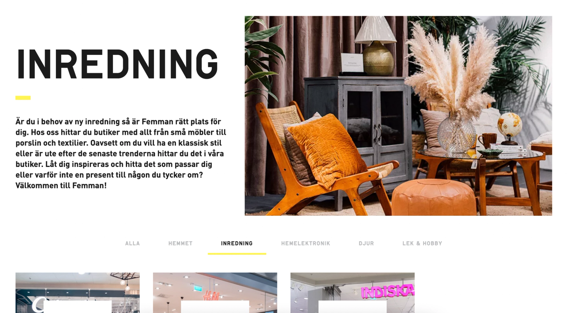 Femman har ett stort utbud av butiker men konkurrensen i sökresultatet är också stor med andra gallerior, butikernas egna webbplatser och andra webbplatser som listar butiker. Detta ställde krav på utformningen på alla sidtyper på webbplatsen.